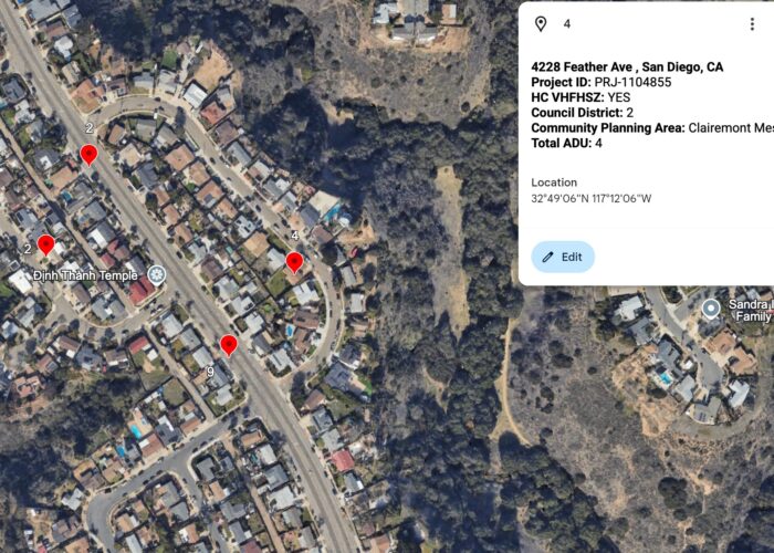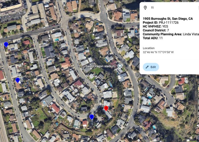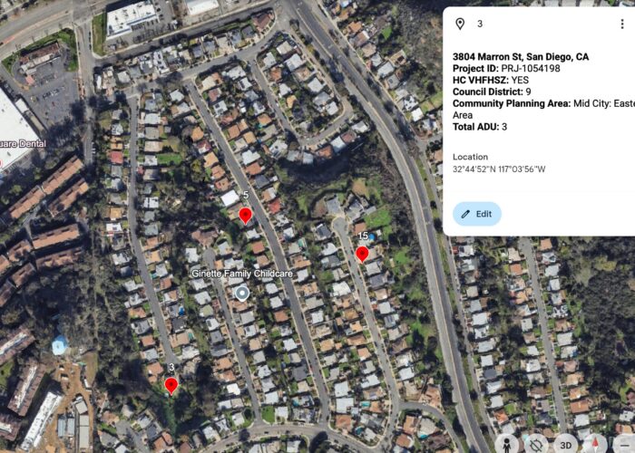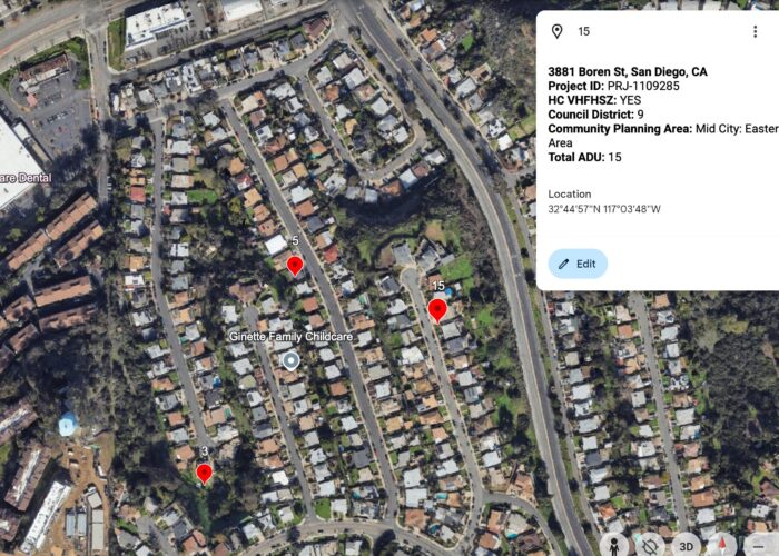 Of the 282 projects under the Bonus ADU program nearly one in ten are in locations with limited evacuation routes. In many cases these sites are on cul-de-sacs with only a single road out. View the locations of these 24 here or browse the map with all Bonus ADU projects.